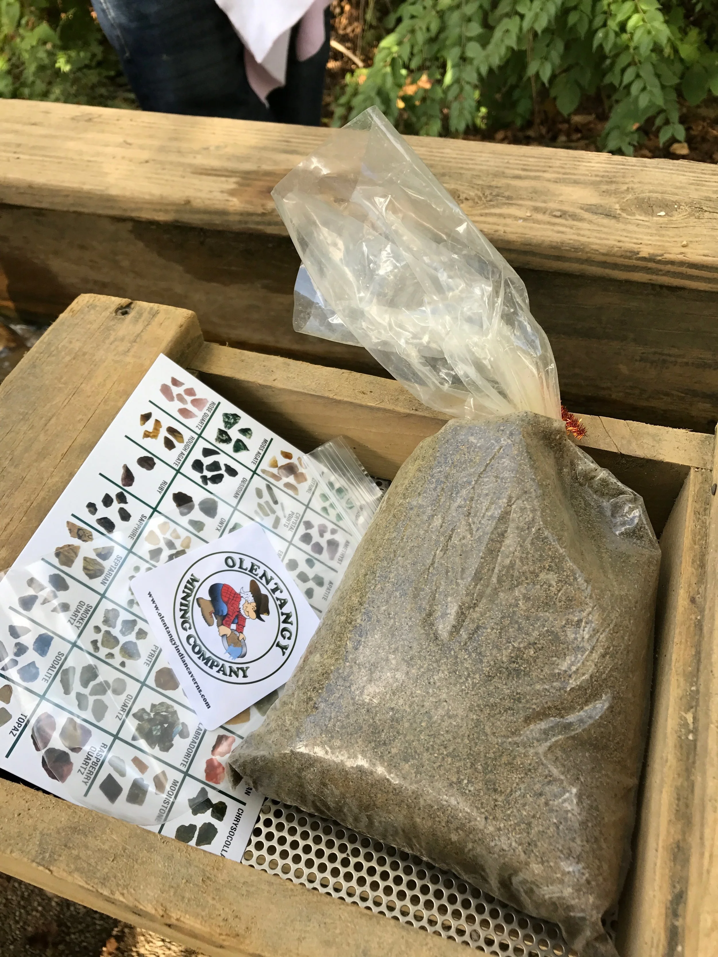 After the kids took us on a complete tour of the caverns we headed back up the steps and straight to gem mining. Each kid got a gem mining kit which consisted of a bag of dirt (with little gems hiding inside) and a sifter, a key to help them name the gems they found, and a bag to put their goodies. We poured a little bit of the dirt into the sifter and ran it under the water, the kids LOVED finding their cool stuff. Since our adventure was in the fall, they had spooky gem mining bags that had a few extra surprises - like eyeballs, spiders, and more. A few of the kids found vampire teeth in their spooky themed bags and immediately put them in their mouths. As parents, we were a little grossed out by that, but they had a blast and that's what mattered the most.